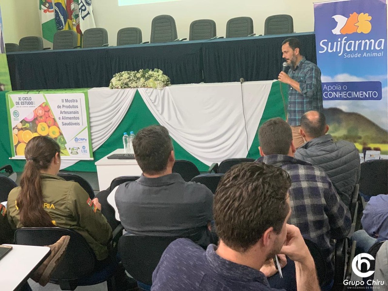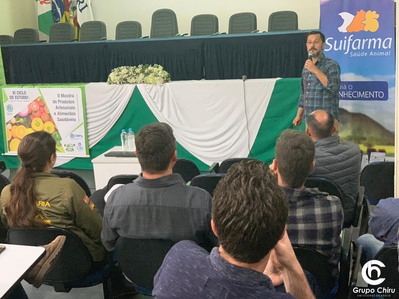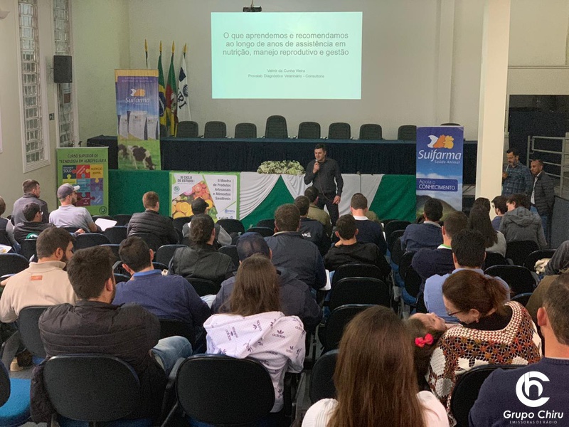 Desde o dia 10 o curso de Tecnologia em Agropecuária da URI campus Frederico Westphalen promove mais o XI Ciclo de Estudos de Ciências Agrarias tratando sobre a contemporaneidade no campo e nesta quinta-feira, 12, em parceria com a Suifarma trouxe o médico veterinário Valmir da Cunha Vieira para falar com acadêmicos e produtores sobre bovinocultura de leite.