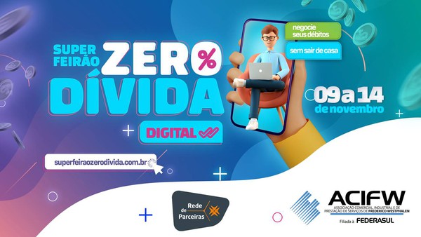 A ACIFW, em parceria com a CDL Poa, está lançando o Super Feirão Zero Dívida, ação que permite a negociação com condições especiais entre empresas e consumidores inadimplentes, oportunizando que estes comecem um ano novo com tudo em dia.