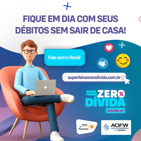 A ACIFW, em parceria com a CDL Poa, lançou a ação Super Feirão Zero Dívida, que tem como objetivo a negociação com condições especiais entre empresas e consumidores inadimplentes, oportunizando que estes comecem um ano novo com tudo em dia. A campanha se encerra neste sábado, 14, e está sendo realizada de forma virtual.