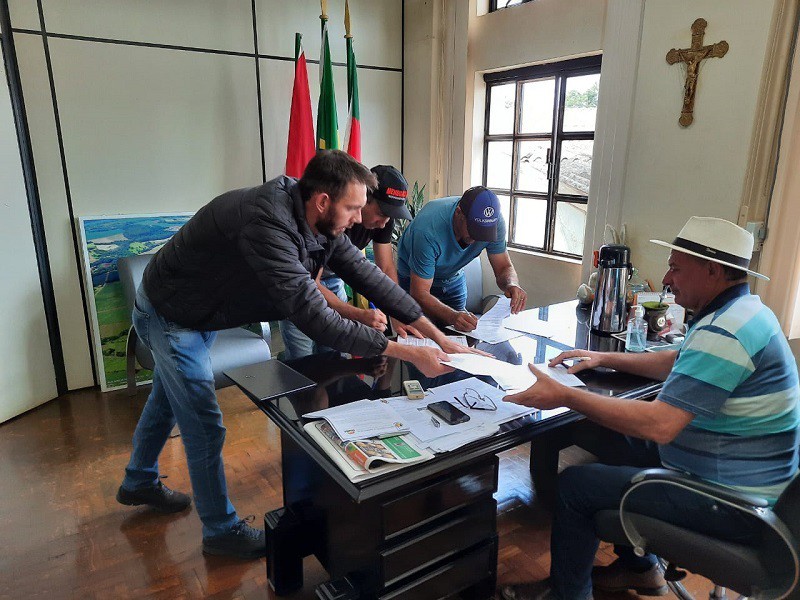 A solenidade ocorreu no gabinete do prefeito Valmir Luiz Menegat, e contou com a participação dos secretários Tiago Pessotto, da Agricultura e Sirlei Canci, do Planejamento, além de representantes das quatro comunidades.
