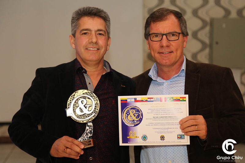 A Tecsol Agroindustrial Ltda, com sede em Frederico Westphalen, recebeu o prêmio TOP Empresarial Nacional 2018 “Aos Melhores do Ano”. A cerimônia aconteceu na última sexta-feira, 27, em Florianópolis - SC.