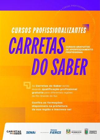 O município de Tenente Portela passa a contar com cursos profissionalizantes gratuitos por meio do Programa Carretas do Saber, iniciativa voltada à qualificação da população e à ampliação das oportunidades de inserção no mercado de trabalho. A ação é desenvolvida pelo SENAI, em parceria com o Sistema FIERGS, o Governo do Estado do Rio Grande do Sul e a Prefeitura de Tenente Portela, por meio da Secretaria de Desenvolvimento Econômico e Turismo.