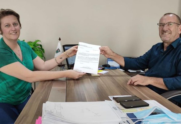 Documento que confirma o recurso foi entregue ao prefeito Rosemar Sala pela vereadora Irinéia Koch Lena