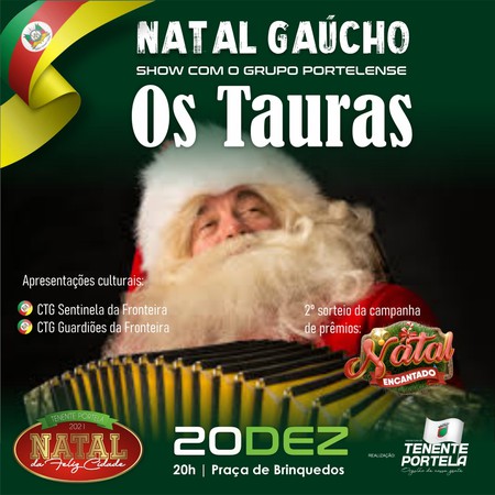 De 12 a 23 de dezembro, Tenente Portela terá vários eventos integrando a programação do “Natal da Feliz Cidade”. Um dos destaques será o Natal Gaúcho, que acontece em 20 de dezembro.