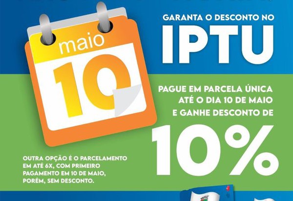 Os contribuintes portelenses precisam ficar atentos ao prazo para pagamento do IPTU 2022. O calendário estabelecido para esta ano determina o dia 10 de maio como data limite para quitar o tributo em parcela única e obter o desconto de 10%. Outra opção é o parcelamento em até seis vezes, com vencimento da primeira também em 10 de maio, mas neste caso, sem desconto.