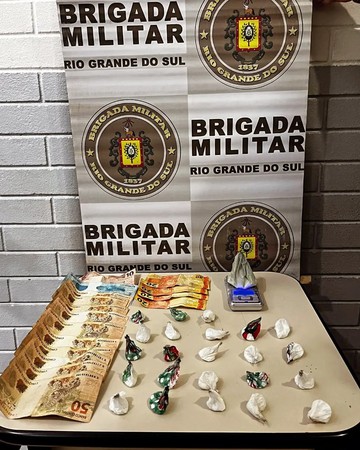 Na busca pessoal foram localizadas 23 porções de cocaína (38,7gramas) e uma porção maior com 23,5 gramas, além de uma quantia em dinheiro, um celular e uma balança de precisão.