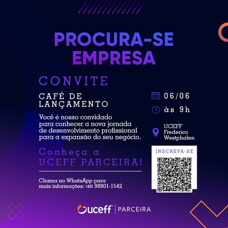 Andressa destaca que ao participar do programa, as empresas parceiras têm acesso a todo know-how dos mais de 20 anos de presença da UCEFF no mercado empreendedor e corporativo de Chapecó e região. “Vamos convidar nossos parceiros de décadas e também empresas emergentes para nos auxiliar nessa jornada de treinamento, capacitação, atualização e aprendizado”, afirma.