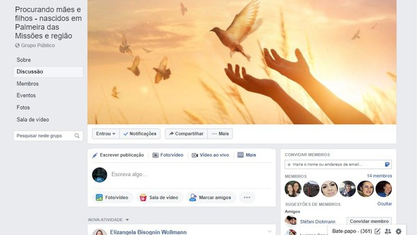 Sugiu a ideia de fazer um grupo, primeiro no whatsApp, por este limitar o número de participantes e também não ser acessível a todos foi criado neste domingo, 19, um grupo no Facebook, chamado: Procurando mães e filhos - nascidos em Palmeira das Missões e região.