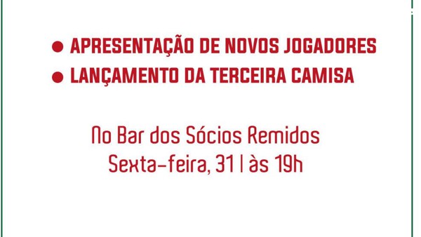 O União Frederiquense realiza nesta sexta-feira, 31 de maio, o evento oficial de apresentação da terceira camisa do clube e apresentação de novos jogadores para temporada 2024. O intuito é aproximar o torcedor depois de quase um mês parado em virtude das enchentes que atingiram o Rio Grande do Sul.