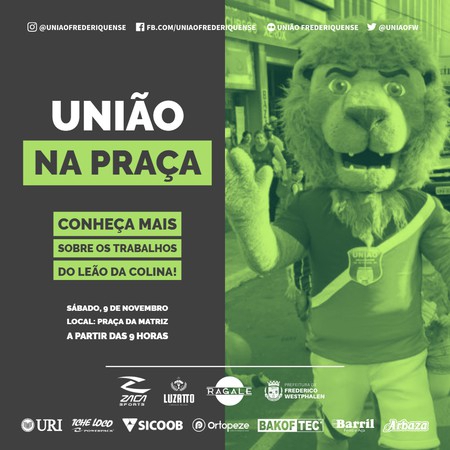 Para se aproximar do torcedor e associados, o União Frederiquense realizará a primeira edição do “União na Praça”. Integrantes do clube estarão na Praça da Matriz no sábado, 9 de novembro, para apresentar informações sobre a equipe, as formas de associação e também os benefícios de se tornar associado.