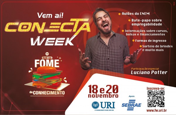 Ocorre na próxima semana, entre os dias 18 e 20, mais uma edição do Conecta Week na URI, Câmpus de Frederico Westphalen. O evento, realizado de forma inteiramente on-line, tem como objetivo mostrar aos estudantes do ensino médio das escolas da região os cursos da universidade, bem como proporcionar aos alunos o contato com os professores da instituição.