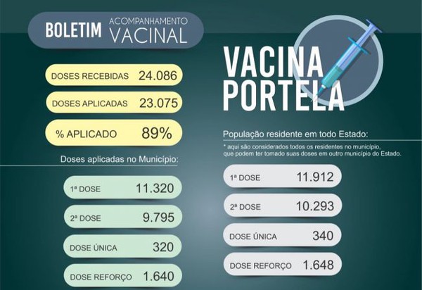 Sistema de Monitoramento da Secretaria de Estado da Saúde aponta que 90,9% dos portelenses está vacinado com pelo menos uma dose
