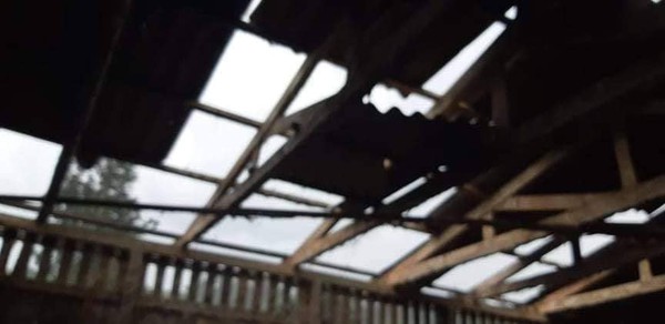 Telhado de uma garagem no interior do município foi parcialmente arrancado - Foto: Palmitos Online