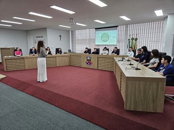 Marizete destacou a importância do Programa Vereador Mirim como instrumento de formação cidadã e de aproximação dos estudantes com os processos democráticos. Em seguida, foram apresentados os setores administrativos e as atribuições dos servidores.