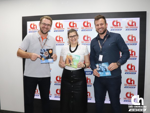 Nesta quarta-feira, 5 de dezembro, o coordenador da Pós-graduação e Extensão, professor Kurlan Frey e o articulador de Pós-Graduação, Rafael Engel participaram da programação da FM 107,9, durante o Batidão da Chiru, apresentado por Jaisson Argenta para divulgar o processo seletivo. Os representantes da UCEFF também foram recebidos pela jornalista do Grupo Chiru Comunicações, Priscila Nhoatto.