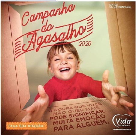 A Rede Vida Farmácias realiza mais uma ação social e promove durante o mês de julho a campanha do agasalho 2020. Podem ser doadas roupas e agasalhos em geral, adulto e infantil, masculino e feminino. Além disso, também podem ser entregues cobertores e calçados em boas condições de uso.