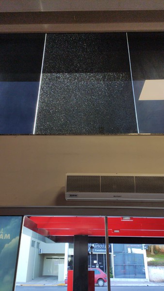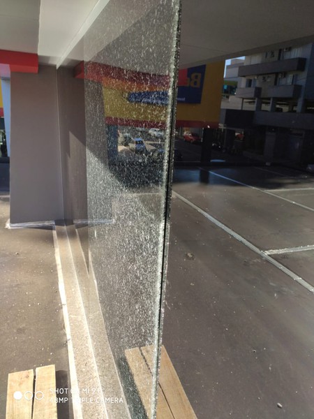 Como os vidros são reforçados com duas camadas de película, apesar de terem sido completamente quebrados o espaço não ficou aberto. Para a substituição a empresa investiu mais de R$ 2 mil.