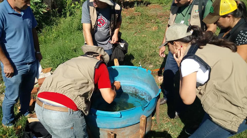 Todas as propriedades foram visitadas a fim de encontrar e eliminar possíveis focos com acumulo de água que pudessem servir para a reprodução do mosquito Aedes aegypti. As larvas encontradas foram encaminhadas para analise na 15ª CRS.
