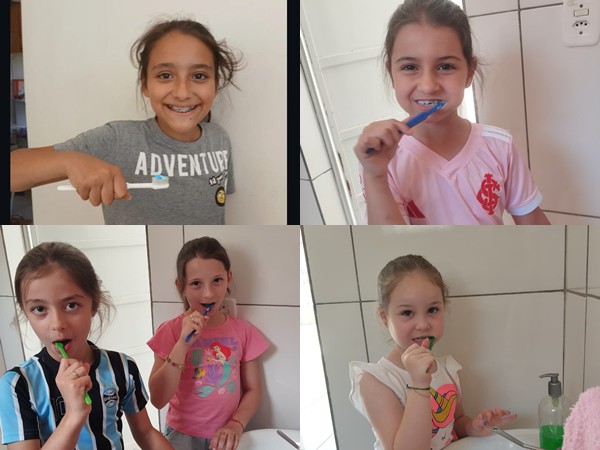 As turmas receberam orientações sobre higiene oral e participaram de uma sessão de escovação supervisionada, prática voltada à prevenção de cáries e para a formação de bons hábitos desde a infância.